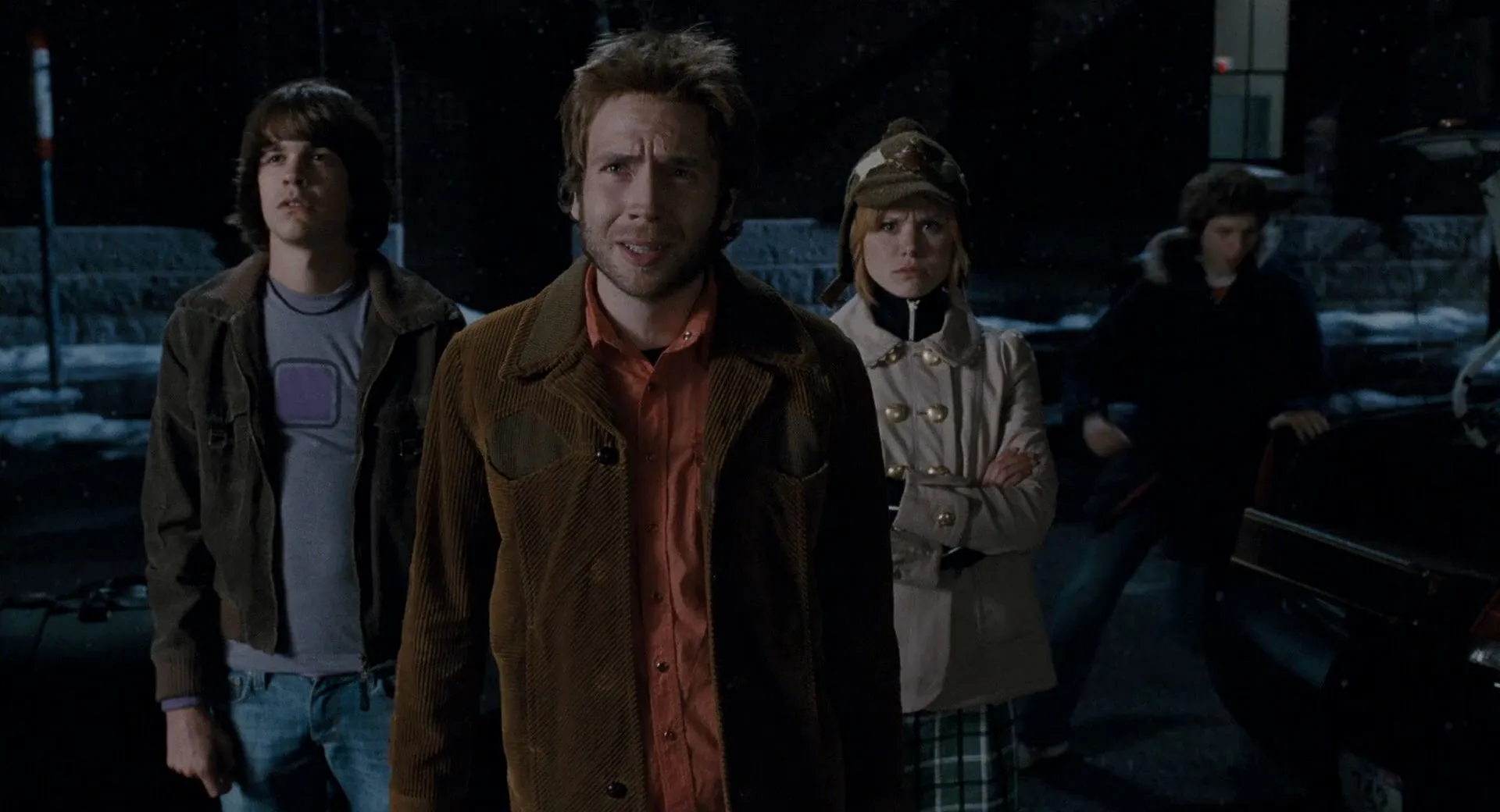 Cast: Michael Cera as Scott Pilgrim, Mary Elizabeth Winstead as Ramona Flowers, Ellen Wong as Knives Chau, Kieran Culkin as Wallace Wells, Alison Pill as Kim Pine, Mark Webber as Stephen Stills, Johnny Simmons as Young Neil, Jason Schwartzman as Gideon Graves, Anna Kendrick as Stacey Pilgrim, Aubrey Plaza as Julie Powers, Satya Bhabha as Matthew Patel, Chris Evans as Lucas Lee, Brandon Routh as Todd Ingram, Mae Whitman as Roxy Richter, Brie Larson as Envy Adams, Keita Saito as Kyle Katayanagi, Shota Saito as Ken Katayanagi, Will Bowes as Party Goer, Celine Lepage as Party Goer, Mark Leroy as Party Goer, Kjartan Hewitt as Jimmy, Ben Lewis as Other Scott, Nelson Franklin as Comeau, Kristina Pesic as Sandra, Matt Watts as Promoter, Ingrid Haas as Monique, Maurie W. Kaufmann as Joel, Marley Otto as Party Goer, Christine Watson as Demon Hipster Chick, Chantelle Chung as Tamara Chen, Don McKellar as Director, Jung-Yul Kim as Goon, Erik Knudsen as Crash, Abigail Chu as Trasha, Tennessee Thomas as Lynette Guycott, Emily Kassie as Winifred Hailey, Michael Lazarovitch as Some Guy, John Patrick Amedori as Lollipop Hipster, Joe Dinicol as Elevator Hipster, Craig Stickland as Elevator Hipster, Bill Hader as The Voice (voice), Thomas Jane as Vegan Police (uncredited), Clifton Collins Jr. as Vegan Police (uncredited), Bryan Lee O'Malley as Lee's Palace Bar Patron (uncredited), George Back as Party Goer